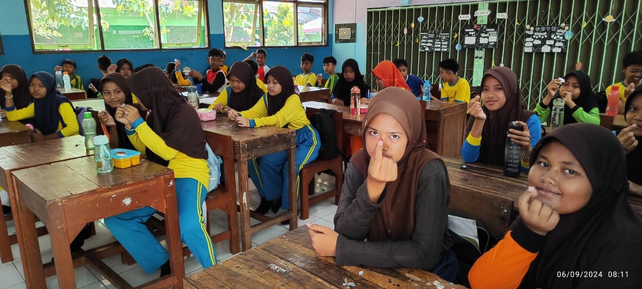 Sebagai bagian dari Aksi Bergizi Serentak, siswa juga mengikuti kegiatan minum tablet tambah darah. Tablet ini diberikan untuk mencegah dan mengatasi anemia, terutama pada siswa yang mungkin mengalami kekurangan zat besi. Kegiatan ini dilaksanakan secara serentak, di mana setiap siswa membawa air putih untuk memudahkan konsumsi tablet. Didampingi oleh wali kelas, siswa mengikuti instruksi mengenai cara mengonsumsi tablet dengan benar. Minum tablet tambah darah ini merupakan langkah penting untuk memastikan bahwa semua siswa mendapatkan asupan zat besi yang cukup, yang berperan vital dalam pembentukan sel darah merah dan menjaga energi serta konsentrasi mereka.